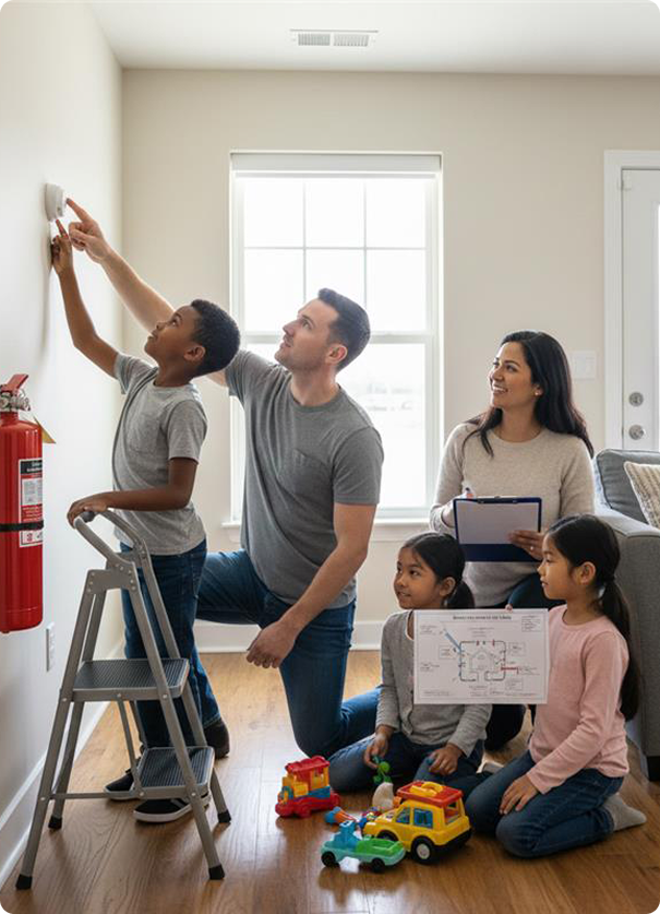 Fires don’t wait for daylight. We guide families through realistic night escape drills, ensuring plans work under stress and in the dark.